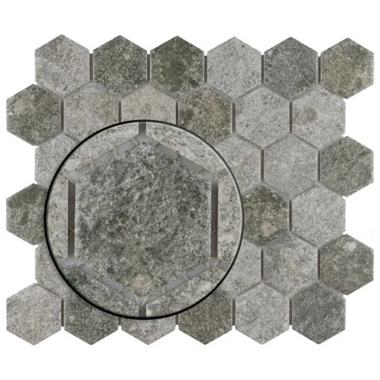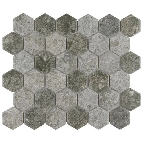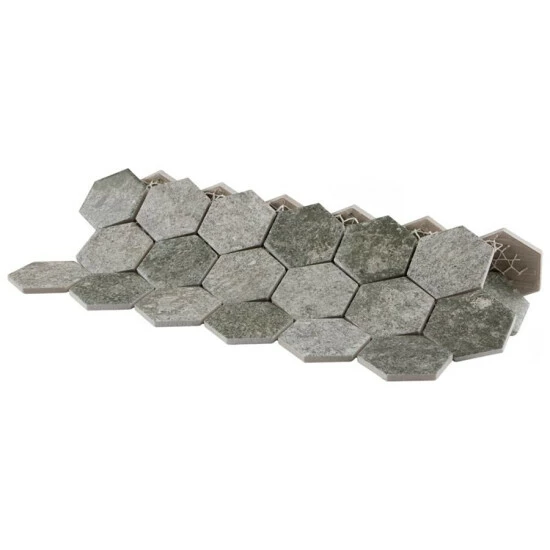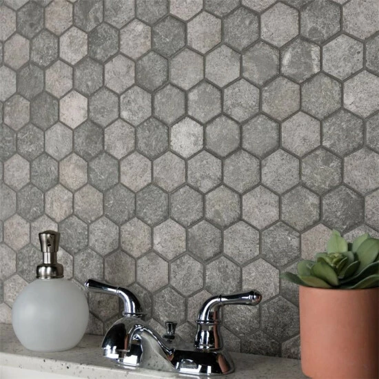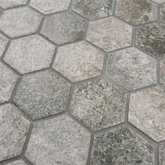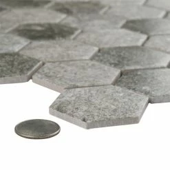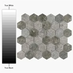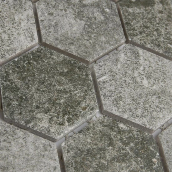 Grey 11-1/8 in. x 12-5/8 in. Floor and Wall Tile brings the irreplaceable beauty of nature into any living space. As an innovative twist on a classic hexagon, this mosaic is comprised of hexagonal chips in varying shades of grey with a slightly textured surface. This tile replicates the natural appeal of stone with imitation scuffs and spots that suit a variety of looks, including vintage, natural and modern. Its durable and frost resistant features make this an ideal choice for both indoor and outdoor spaces including, kitchen backsplashes, bathrooms and patios. Tile is the better choice for your space. This tile is made from natural ingredients, making it a healthy choice as it is free from allergens, VOCs, formaldehyde and PVC.