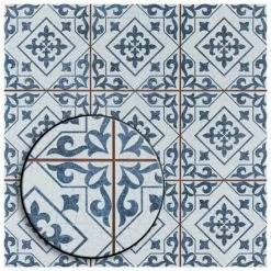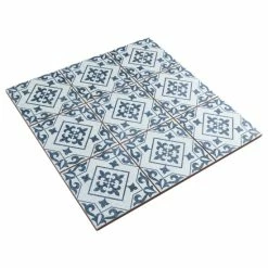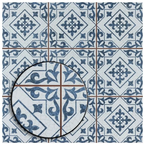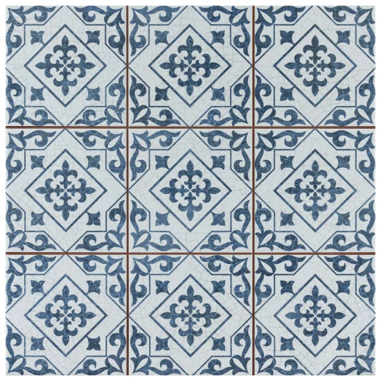 Our Harmonia Atlantic Cobalt Blue 13 in. x 13 in. Ceramic Floor and Wall Tile creates the look of a stunning leading-edge mosaic-like design with the harmonious, easy installation of a square tile. Inspired by our best-selling Atlantic Azul, this ceramic encaustic-inspired tile similarly features a crackling cool white surface with denim blue lines that diagonally intersect, creating sharp angles and offset framing patterns around the centered fleur-de-lis motifs. With realistic imitations and scuffs and spots, this elegant floor and wall tile evokes a loved, worn and century-old appearance. Save time and labor spent arranging mosaic sheets and instead install these durable ceramic slabs, which have squares separated by scored grout lines. The scored grout lines can be grouted with the color of your choice to further customize your installation. Its glazed and durable features make it an ideal choice for both commercial and residential indoor installations including kitchens, bathrooms, showers, and entryways. Tile is the better choice for your space. This tile is made from natural ingredients, making it a healthy choice as it is free from allergens, VOCs, formaldehyde and PVC.