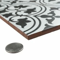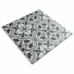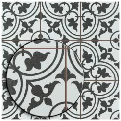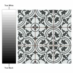 Our Harmonia Classic White 13 in. x 13 in. Ceramic Floor and Wall Tile creates the look of a stunning leading-edge mosaic-like design with the harmonious, easy installation of a square tile. Inspired by our best-selling Arte White, this ceramic encaustic-inspired tile similarly features floral old-world patterns in rich charcoal black that frames dueling arcs in the center, offering subtle contrast and dimension to the decoration. Set on the highest-quality snow white base glaze, the contrasting design features a weathered, speckled look, replicating the beauty of its cement muse. The floral, geometric pattern blends into virtually any design theme, making this an exceptional product for modern installations and historic renovations. Save time and labor spent arranging mosaic sheets and instead install these durable ceramic slabs, which have squares separated by scored grout lines. The scored grout lines can be grouted with the color of your choice to further customize your installation. Its glazed and durable features make it an ideal choice for both commercial and residential indoor installations including kitchens, bathrooms, backsplashes, showers, and entryways. Tile is the better choice for your space. This tile is made from natural ingredients, making it a healthy choice as it is free from allergens, VOCs, formaldehyde and PVC.