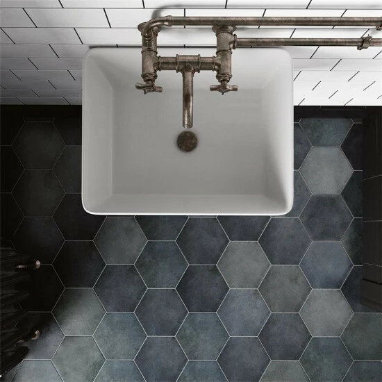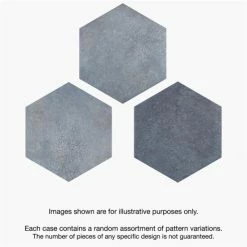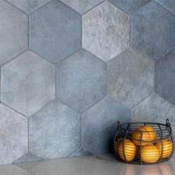 Capturing the rustic appearance of natural stone in a durable porcelain material, our Heritage Hex Indigo 7″ x 8″ Porcelain Floor and Wall Tile brings the irreplaceable beauty of nature into any living space. This matte hexagon tile features natural mineral-like pattern variations in faded light and dark blue hues, replicating the appearance of aged stone. Composed of rich detail and a slightly textured surface, this unique porcelain tile offers decorative, rustic beauty through realistic scuffs and spots that are the marks of well-loved, worn, century-old tile. This trendsetting display of stone-look design is visually appealing and versatile, and blends beautifully with a range of styles from vintage industrial to modern day. Its impervious, frost-resistant and durable features make this an ideal choice for both commercial and residential indoor and outdoor installations including, kitchens, bathrooms, backsplashes, showers, hallways, entryways, patios and fireplace facades. Tile is the better choice for your space. This tile is made from natural ingredients, making it a healthy choice as it is free from allergens, VOCs, formaldehyde and PVC.