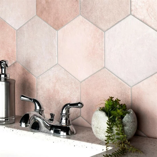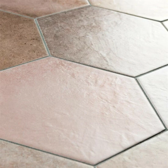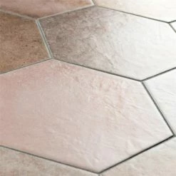 Capturing the rustic appearance of natural stone in a durable porcelain material, our Heritage Hex Rose 7″ x 8″ Porcelain Floor and Wall Tile brings the irreplaceable beauty of nature into any living space. This matte hexagon tile features natural mineral-like pattern variations in faded light tan and blush hues, replicating the appearance of aged stone. Composed of rich detail and a slightly textured surface, this unique porcelain tile offers decorative, rustic beauty through realistic scuffs and spots that are the marks of well-loved, worn, century-old tile. This trendsetting display of stone-look design is visually appealing and versatile, and blends beautifully with a range of styles from vintage industrial to modern day. Its impervious, frost-resistant and durable features make this an ideal choice for both commercial and residential indoor and outdoor installations including, kitchens, bathrooms, backsplashes, showers, hallways, entryways, patios and fireplace facades. Tile is the better choice for your space. This tile is made from natural ingredients, making it a healthy choice as it is free from allergens, VOCs, formaldehyde and PVC.
