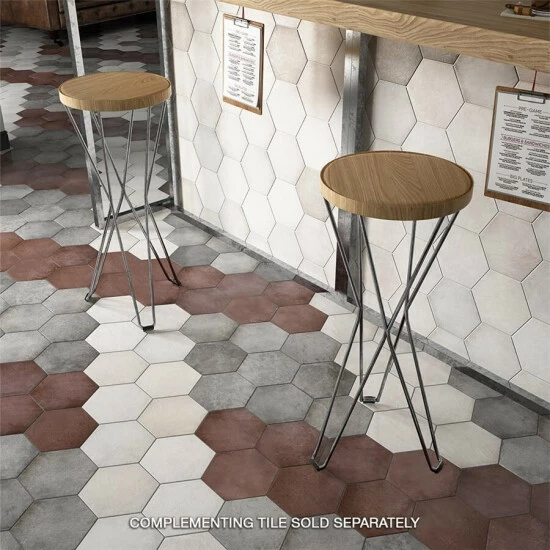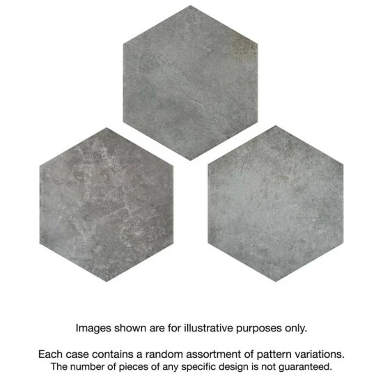 Capturing the rustic appearance of natural stone in a durable porcelain material, our Heritage Hex Shadow 7″ x 8″ Porcelain Floor and Wall Tile brings the irreplaceable beauty of nature into any living space. This matte hexagon tile features natural mineral-like pattern variations in faded light and dark grey hues, replicating the appearance of aged stone. Composed of rich detail and a slightly textured surface, this unique porcelain tile offers decorative, rustic beauty through realistic scuffs and spots that are the marks of well-loved, worn, century-old tile. This trendsetting display of stone-look design is visually appealing and versatile, and blends beautifully with a range of styles from vintage industrial to modern day. Its impervious, frost-resistant and durable features make this an ideal choice for both commercial and residential indoor and outdoor installations including, kitchens, bathrooms, backsplashes, showers, hallways, entryways, patios and fireplace facades. Tile is the better choice for your space. This tile is made from natural ingredients, making it a healthy choice as it is free from allergens, VOCs, formaldehyde and PVC.