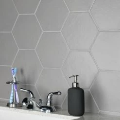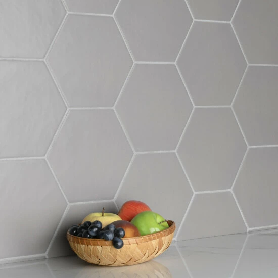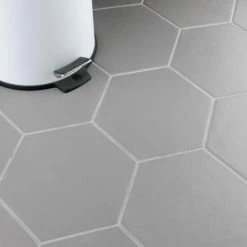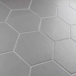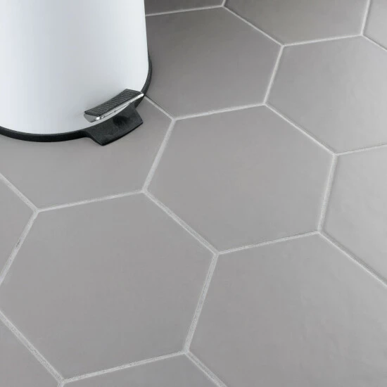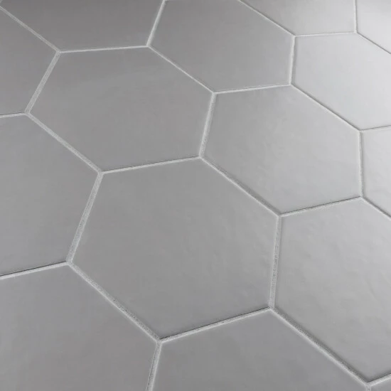 The Hexatile Matte Gris 7 in. x 8 in. Porcelain Floor and Wall Tile features a low sheen, matte finish with a traditional look and feel. This tile works well indoors and out, it’s impervious to water and offers frost resistance for exterior tiling as well. This hexagonal tile is available in black, white and gray.
