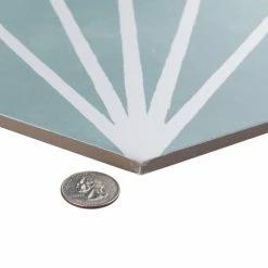Our Horizon Dusk Hex Aquamarine Ceramic Floor and Wall Tile is an innovative blend of playful tones, soft textures, and geometric motifs. This hexagon tile features white lines that extend across a soft blue-green base glaze to create a captivating starburst pattern. With a smooth, matte surface, this ceramic tile can blend into virtually any design theme, ranging from contemporary projects to traditional installations. Its impervious and frost-resistant features make it an ideal choice for indoor and outdoor installations including kitchens, bathrooms, backsplashes, showers, and entryways. Tile is the better choice for your space. This tile is made from natural ingredients, making it a healthy choice as it is free from allergens, VOCs, formaldehyde, and PVC.