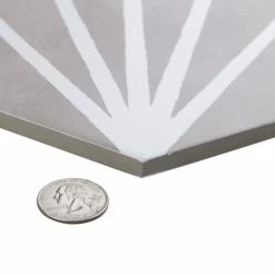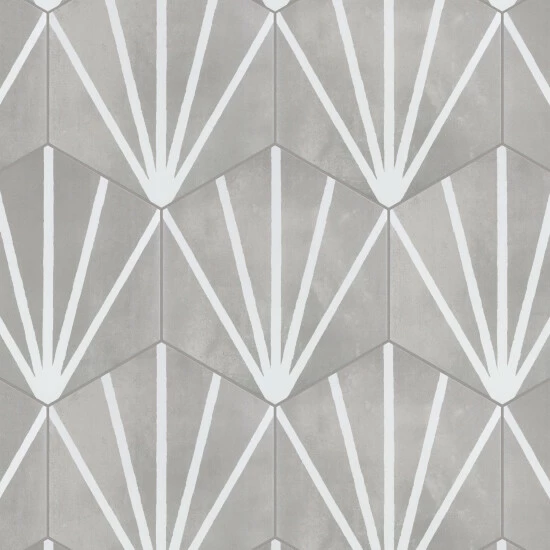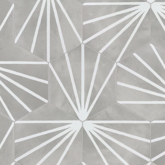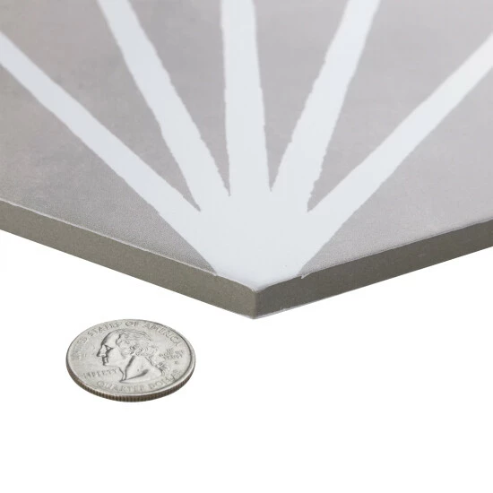 Our Horizon Dusk Hex Gris Ceramic Floor and Wall Tile is an innovative blend of playful tones, soft textures, and geometric motifs. This hexagon tile features white lines that extend across a soft grey base glaze to create a captivating starburst pattern. With a smooth, matte surface, this ceramic tile can blend into virtually any design theme, ranging from contemporary projects to traditional installations. Its impervious and frost-resistant features make it an ideal choice for indoor and outdoor installations including kitchens, bathrooms, backsplashes, showers, and entryways. Tile is the better choice for your space. This tile is made from natural ingredients, making it a healthy choice as it is free from allergens, VOCs, formaldehyde, and PVC.