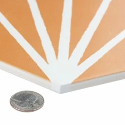 Modeling a geometric look, our Horizon Dusk Hex Mostaza Ceramic Floor and Wall Tile features a smooth, matte finish, making it a great choice for your space. With its vitreous, frost-resistant features, this yellow hexagon tile is an ideal selection for both indoor and outdoor residential installations, including bathrooms, backsplashes, showers, hallways and fireplace facades. This tile is a perfect choice on its own or paired with other products in the Horizon Dusk Hex Collection. Tile is the better choice for your space. This tile is made from natural ingredients, making it a healthy choice as it is free from allergens, VOCs, formaldehyde, and PVC.