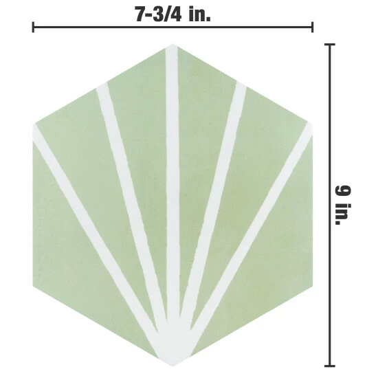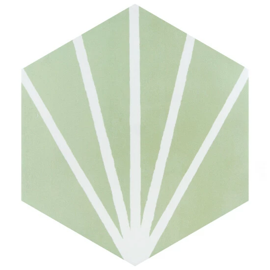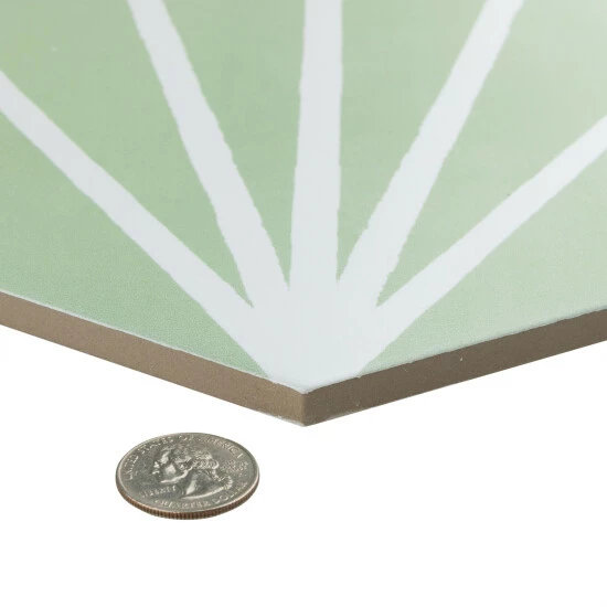 Our Horizon Dusk Hex Verde Ceramic Floor and Wall Tile is an innovative blend of playful tones, soft textures, and geometric motifs. This hexagon tile features white lines that extend across a pastel green base glaze to create a captivating starburst pattern. With a smooth, matte surface, this ceramic tile can blend into virtually any design theme, ranging from contemporary projects to traditional installations. Its impervious and frost-resistant features make it an ideal choice for indoor and outdoor installations including kitchens, bathrooms, backsplashes, showers, and entryways. Tile is the better choice for your space. This tile is made from natural ingredients, making it a healthy choice as it is free from allergens, VOCs, formaldehyde, and PVC.
