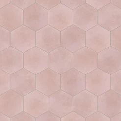 Modeling a geometric look, our Horizon Hex Rosa Ceramic Floor and Wall Tile features a smooth, matte finish, making it a great choice for your space. With its vitreous, frost-resistant features, this pink hexagontile is an ideal selection for both indoor and outdoor residential installations, including kitchens, bathrooms, backsplashes, showers, hallways and fireplace facades. This tile is a perfect choice on its own or paired with other products in the Horizon Hex Collection. Tile is the better choice for your space. This tile is made from natural ingredients, making it a healthy choice as it is free from allergens, VOCs, formaldehyde, and PVC.