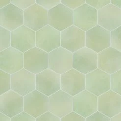 Modeling a geometric look, our Horizon Hex Verde Ceramic Floor and Wall Tile features a , matte finish, making it a great choice for your space. With its vitreous, frost-resistant features, this green hexagon tile is an ideal selection for both indoor and outdoor residential installations, including bathrooms, backsplashes, showers, hallways and fireplace facades. This tile is a perfect choice on its own or paired with other products in the Horizon Hex Collection. Tile is the better choice for your space. This tile is made from natural ingredients, making it a healthy choice as it is free from allergens, VOCs, formaldehyde, and PVC.