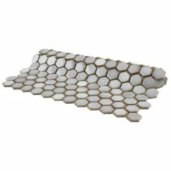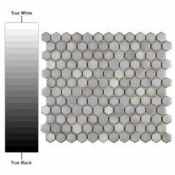 Our Hudson 1 in. Hex Grey Eye 13-1/4 in. x 11-7/8 in. Porcelain Floor and Wall Mosaic Tile instantly elevates spaces through a refreshing dose of geometric design. With subtle variations in color tone that gradually fade to taupe around the border, each piece is truly unique. Its rich reactive glaze echoes light to dark grey hues with a high glossy finish that is unique yet simplistic enough to integrate into any design, ranging from traditional style renovations to modern home projects. Its impervious and frost-resistant features make this hexagon mosaic an ideal choice for indoor and outdoor floor and wall installations including, kitchen backsplashes, bathroom showers and accent walls. This porcelain mosaic floor and wall tile can be used as a whole sheet or cut into smaller strips as an accent piece. It is a perfect choice on its own or coordinated with other colors in our Hudson 1 in. Hex series. Tile is the better choice for your space. This tile is made from natural ingredients, making it a healthy choice as it is free from allergens, VOCs, formaldehyde and PVC.