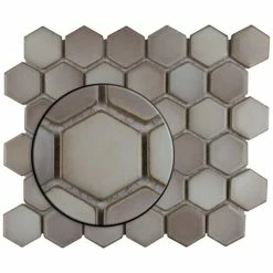 As a modern, enlarged deviation from the classic hexagon mosaic, our Hudson Due Hex 2 in. Dove Grey 12-1/2 in. x 11-1/4 in. Porcelain Floor and Wall Mosaic Tile instantly elevates spaces through a refreshing dose of geometric design. Featuring a reactive glaze with an eye-drop effect, these tiles have varying shades of grey that blend to taupe around the edges. This porcelain mosaic floor and wall tile creates a uniquely sporadic design through a pleasing mixture of cool-toned tints with additional dimension added by the smooth, high-gloss finish. Its impervious and frost-resistant features make this an ideal choice for both commercial and residential indoor and outdoor floor and wall installations including, kitchen backsplashes, bathroom showers and accent walls. This hexagon mosaic can be used as a whole sheet or cut into smaller strips as an accent piece. It is a perfect choice on its own or coordinated with other colors in our Hudson Due Hex series. Tile is the better choice for your space. This tile is made from natural ingredients, making it a healthy choice as it is free from allergens, VOCs, formaldehyde and PVC.