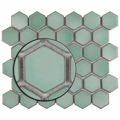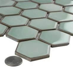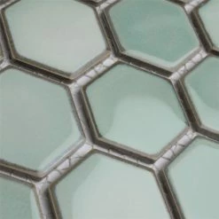 As a modern, enlarged deviation from the classic hexagon mosaic, our Hudson Due Hex 2 in. Mint Green 12-1/2 in. x 11-1/4 in. Porcelain Mosaic Floor and Wall Tile instantly elevates spaces through a refreshing dose of geometric design. Featuring a reactive glaze with an eye-drop effect, these tiles have hues of mint green that blend to taupe around the edges. This porcelain mosaic floor and wall tile creates a uniquely sporadic design through a pleasing mixture of cool-toned tints with additional dimension added by the smooth, high-gloss finish. Its impervious and frost-resistant features make this an ideal choice for both commercial and residential indoor and outdoor floor and wall installations including, kitchen backsplashes, bathroom showers and accent walls. This hexagon mosaic can be used as a whole sheet or cut into smaller strips as an accent piece. It is a perfect choice on its own or coordinated with other colors in our Hudson Due Hex series. Tile is the better choice for your space. This tile is made from natural ingredients, making it a healthy choice as it is free from allergens, VOCs, formaldehyde and PVC.