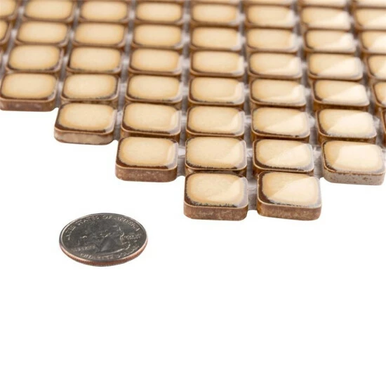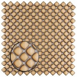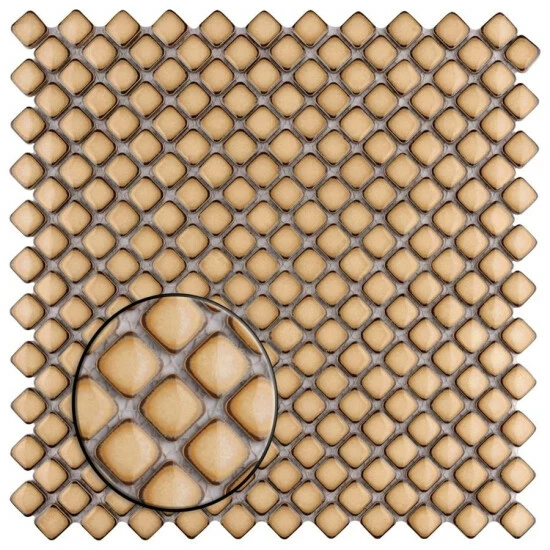 This Hudson Diamond Caffe 12 in. x 12 in. Porcelain Mosaic Tile is a calming creamy coffee color with a slightly darkened edge to add dimension. The deep color and reactive glaze couple perfectly, allowing for a peaceful aesthetic. High gloss sheen is the final touch, adding one more eye-catching element to this already uniquely beautiful tile. Impervious, frost-resistant and easy to clean, this tile is a perfect choice on its own or coordinated with other colors in our Hudson Diamond series.