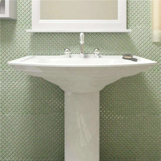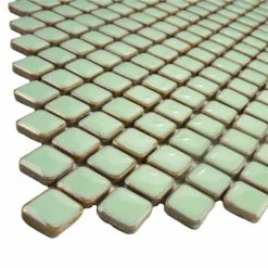 This Hudson Diamond Light Green 12 in. x 12 in. Porcelain Mosaic Tile offers a beautifully tranquil update on the timeless diamond design. This tile features soft green tones in the center mixed with darker shades on the edge. The end effect is a pleasing mixture with additional dimension added by the high-gloss finish. Impervious, frost-resistant and easy to clean, this tile is a perfect choice on its own or coordinated with other colors in our Hudson Diamond series.