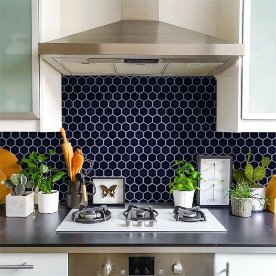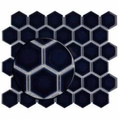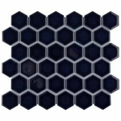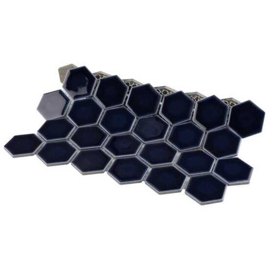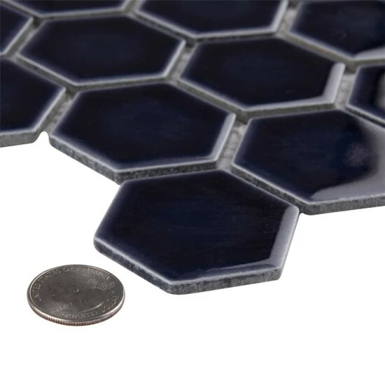 As a modern, enlarged deviation from the classic hexagon mosaic, our Hudson Due Hex 2 in. Smokey Blue 12-1/2 in. x 11-1/4 in. Porcelain Floor and Wall Mosaic Tile instantly elevates spaces through a refreshing dose of geometric design. Featuring a reactive glaze with an eye-drop effect, these tiles have hues of deep cobalt blue that blend to midnight blue around the edges. This porcelain mosaic floor and wall tile creates a uniquely sporadic design through a pleasing mixture of cool-toned tints with additional dimension added by the smooth, high-gloss finish. Its impervious and frost-resistant features make this an ideal choice for both commercial and residential indoor and outdoor floor and wall installations including, kitchen backsplashes, bathroom showers and accent walls. This hexagon mosaic can be used as a whole sheet or cut into smaller strips as an accent piece. It is a perfect choice on its own or coordinated with other colors in our Hudson Due Hex series. Tile is the better choice for your space. This tile is made from natural ingredients, making it a healthy choice as it is free from allergens, VOCs, formaldehyde and PVC.