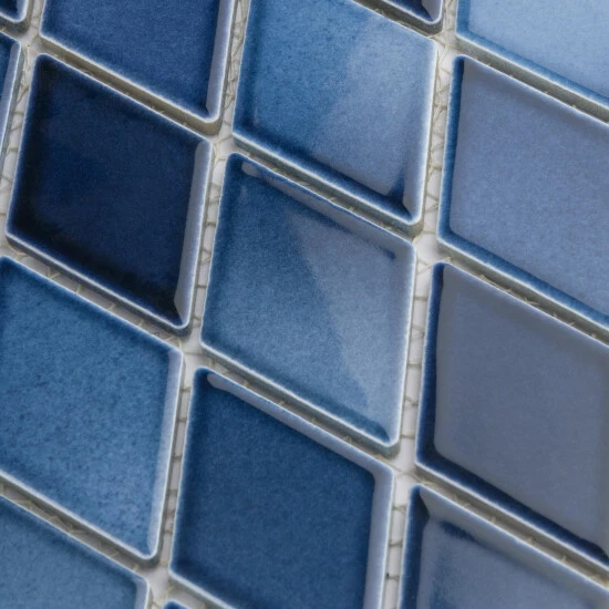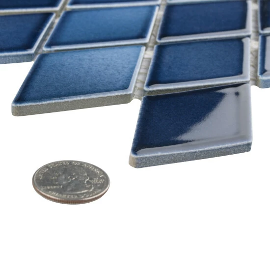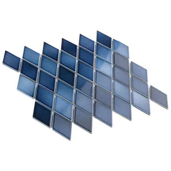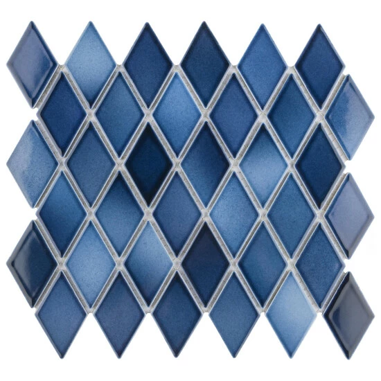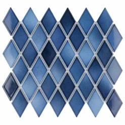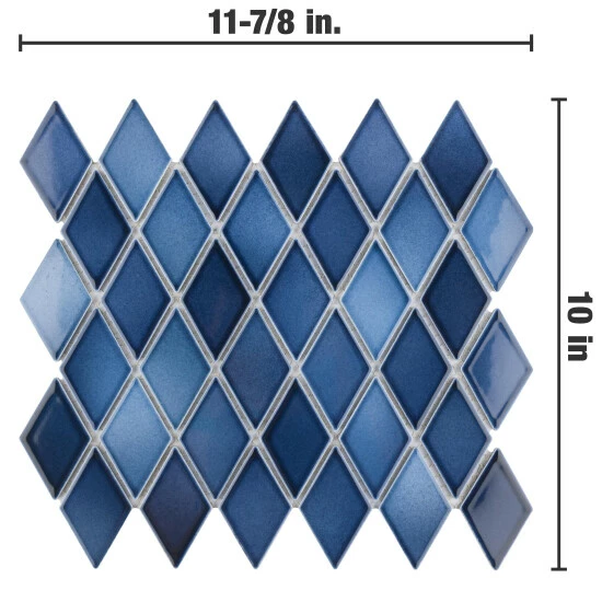 - Our Hudson Kite Glacier 10-1/4 in. x 11-3/4 in. Porcelain Floor and Wall Mosaic Tile instantly elevates spaces through a refreshing combination of geometric design and vivid color. Featuring a reactive glaze, these diamond-shaped tiles have soothing hues of light and dark blue that blend to white around the edges. This floor and wall mosaic creates a unique sporadic design through a pleasing mixture of cool-toned tints with additional dimension added by the smooth, high-gloss finish. Its impervious and frost-resistant features make this porcelain mosaic tile an ideal choice for both commercial and residential indoor and outdoor installations including, kitchens, backsplashes, bathrooms, showers, entryways, fireplace facades and patios. Please note that although we strive to ensure the accuracy of our product content, the reactive glazing creates a stunning one-of-a-kind look which may result in noticeable color variation between different dye lots. Tile is the better choice for your space. This tile is made from natural ingredients, making it a healthy choice as it is free from allergens, VOCs, formaldehyde and PVC.