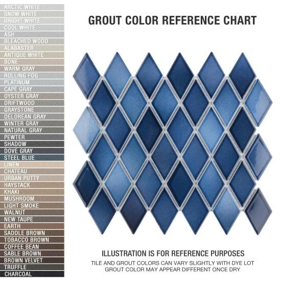 Our Hudson Kite Glacier 10-1/4 in. x 11-3/4 in. Porcelain Floor and Wall Mosaic Tile instantly elevates spaces through a refreshing combination of geometric design and vivid color. Featuring a reactive glaze, these diamond-shaped tiles have soothing hues of light and dark blue that blend to white around the edges. This floor and wall mosaic creates a unique sporadic design through a pleasing mixture of cool-toned tints with additional dimension added by the smooth, high-gloss finish. Its impervious and frost-resistant features make this porcelain mosaic tile an ideal choice for both commercial and residential indoor and outdoor installations including, kitchens, backsplashes, bathrooms, showers, entryways, fireplace facades and patios. Please note that although we strive to ensure the accuracy of our product content, the reactive glazing creates a stunning one-of-a-kind look which may result in noticeable color variation between different dye lots. Tile is the better choice for your space. This tile is made from natural ingredients, making it a healthy choice as it is free from allergens, VOCs, formaldehyde and PVC.