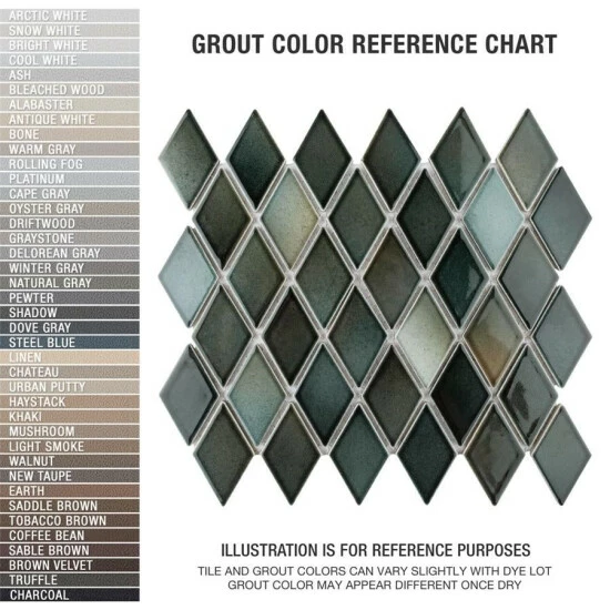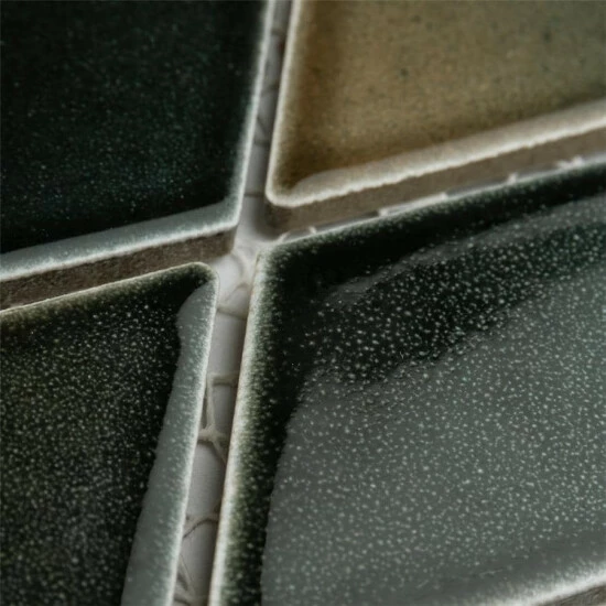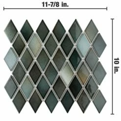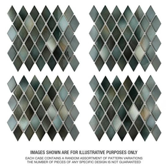 Β Our Hudson Kite Stormy Night Porcelain Floor and Wall Mosaic Tile instantly elevates spaces through a refreshing dose of geometric design. Featuring a reactive glaze, these diamond-shaped tiles have varying dark brown, green, and blue tones that blend to white around the edges. This floor and wall mosaic creates a unique sporadic design through a pleasing mixture of dark-toned tints with additional dimension added by the smooth, high-gloss finish. Its impervious and frost-resistant features make this porcelain mosaic tile an ideal choice for both commercial and residential indoor and outdoor installations including, kitchens, backsplashes, bathrooms, showers, entryways, fireplace facades and patios. Tile is the better choice for your space. This tile is made from natural ingredients, making it a healthy choice as it is free from allergens, VOCs, formaldehyde, and PVC. Please note that although we strive to ensure the accuracy of our product content, the reactive glazing creates a stunning one-of-a-kind look which may result in noticeable color variation between different dye lots.Β