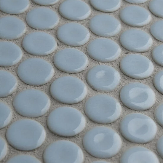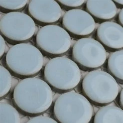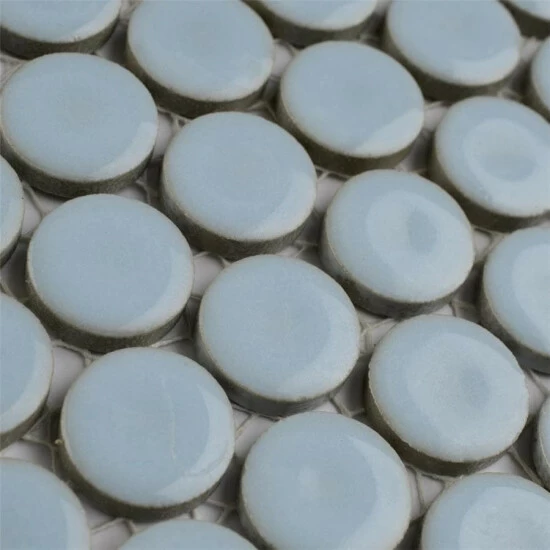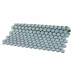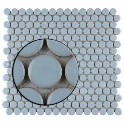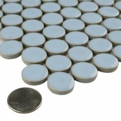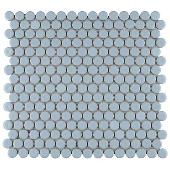 Our Hudson Penny Round Cashmere Blue 12 in. x 12-5/8 in. x 5 mm Porcelain Mosaic Tile is a beautifully tranquil update on the timeless penny round design. Featuring a uniformly glazed surface, these tiles have soothing powder blue color tone with a slight tinge of white. This mosaic is a pleasing mixture of cool-toned tints with additional dimension added by the smooth, high-gloss finish. Its impervious and frost-resistant features make this penny tile an ideal choice for indoor and outdoor floor and wall installations including, kitchen backsplashes, bathroom showers and accent walls. This penny round tile can be used as a whole sheet or cut into smaller strips as an accent piece. It is a perfect choice on its own or coordinated with other colors in our Hudson Penny Round series.