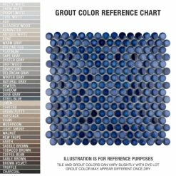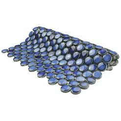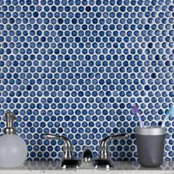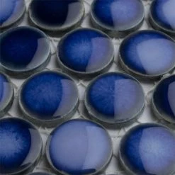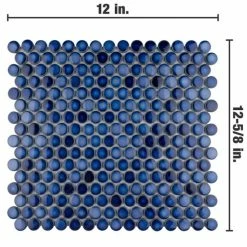 Our Hudson Penny Round Glossy Sapphire 12 in. x 12-5/8 in. x 5 mm Porcelain Mosaic Tile lends a refreshing aesthetic to the classic penny round shape. With subtle variations in color tone that gradually fade to dark grey around the border, each piece is truly unique. Its rich reactive glaze echoes light to dark blue hues with a high glossy finish that is unique yet simplistic enough to integrate into any design, ranging from traditional style renovations to modern home projects. Its impervious and frost-resistant features make this penny tile an ideal choice for indoor and outdoor floor and wall installations including, kitchen backsplashes, bathroom showers and accent walls. This penny round tile can be used as a whole sheet or cut into smaller strips as an accent piece. It is a perfect choice on its own or coordinated with other colors in our Hudson Penny Round series.