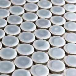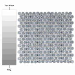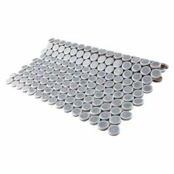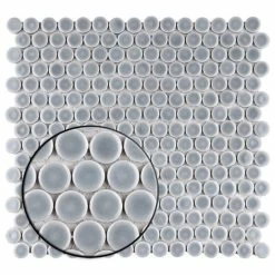 Our Hudson Penny Round Slate 12 in. x 12-5/8 in. x 5 mm Porcelain Mosaic Tile is a beautifully tranquil update on the timeless penny round design. Featuring a reactive glaze with an eye-drop effect, these tiles have a slate grey color tone that blend to white around the edges. This mosaic creates a uniquely sporadic design through a pleasing mixture of cool-toned tints with additional dimension added by the smooth, high-gloss finish. Its impervious and frost-resistant features make this penny tile an ideal choice for indoor and outdoor floor and wall installations including, kitchen backsplashes, bathroom showers and accent walls. This penny round tile can be used as a whole sheet or cut into smaller strips as an accent piece. It is a perfect choice on its own or coordinated with other colors in our Hudson Penny Round series.