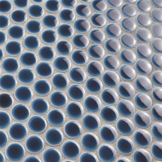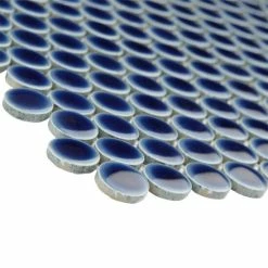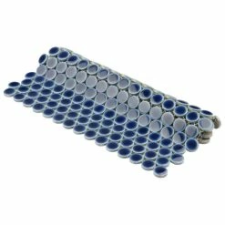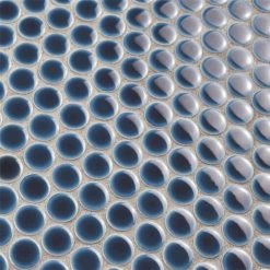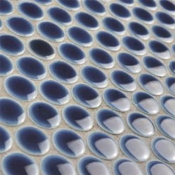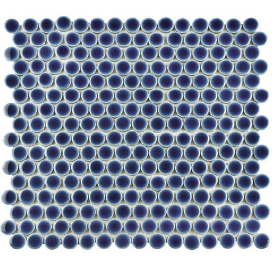 Our Hudson Penny Round Smoky Blue 12 in. x 12-5/8 in. x 5 mm Porcelain Mosaic Tile is a beautifully tranquil update on the timeless penny round design. Featuring a reactive glaze with an eye-drop effect, these tiles have hues of deep cobalt blue that blend to light grey around the edges. This mosaic creates a uniquely sporadic design through a pleasing mixture of cool-toned tints with additional dimension added by the smooth, high-gloss finish. Its impervious and frost-resistant features make this penny tile an ideal choice for indoor and outdoor floor and wall installations including, kitchen backsplashes, bathroom showers and accent walls. This penny round tile can be used as a whole sheet or cut into smaller strips as an accent piece. It is a perfect choice on its own or coordinated with other colors in our Hudson Penny Round series.