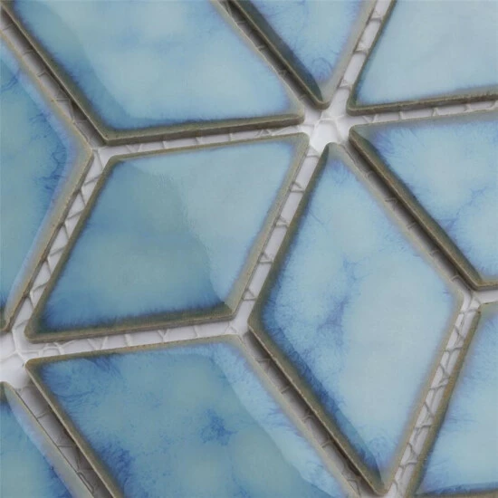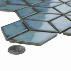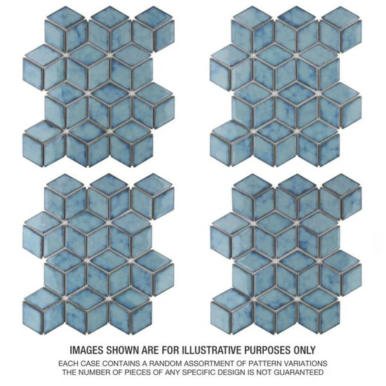 Our Hudson Rhombus Marine Porcelain Floor and Wall Mosaic Tile instantly elevates spaces through a refreshing dose of geometric design. Featuring a reactive glaze, these tiles have varying shades of light and dark sky blue that blend to taupe around the edges. This floor and wall mosaic creates a uniquely sporadic design through a pleasing mixture of cool-toned tints with additional dimension added by the smooth, high-gloss finish. Its impervious and frost-resistant features make this porcelain mosaic tile an ideal choice for both commercial and residential indoor and outdoor floor and wall installations including, kitchens, backsplashes, bathrooms, showers, entryways, fireplace facades and patios. Please note, the unique reactive glazing technique creates a stunning one-of-a-kind effect and may cause high variation between dye lots. Tile is the better choice for your space. This tile is made from natural ingredients, making it a healthy choice as it is free from allergens, VOCs, formaldehyde, and PVC.