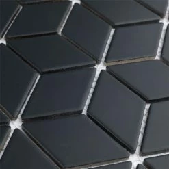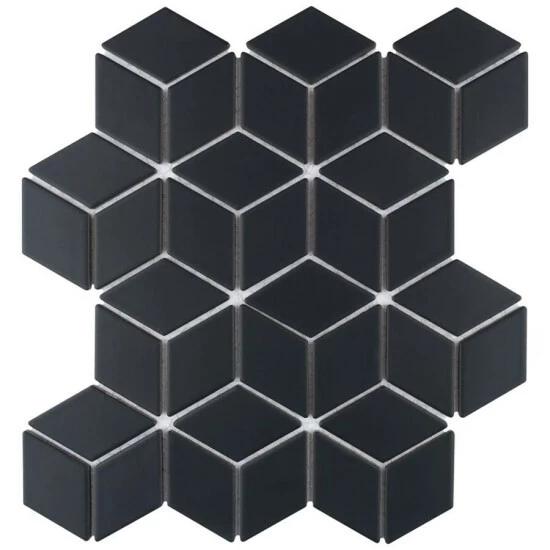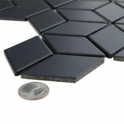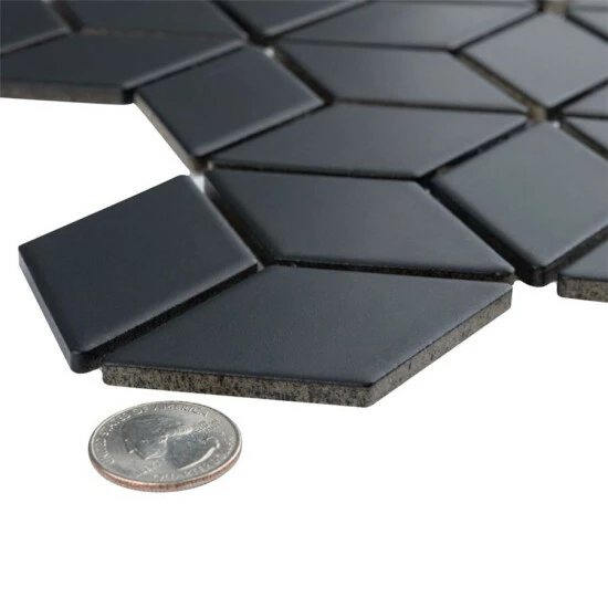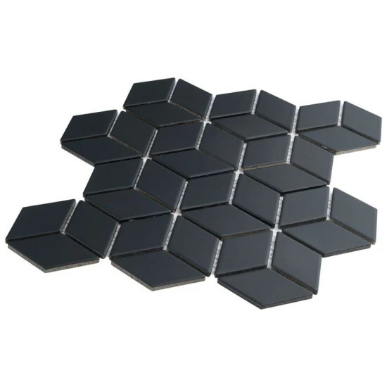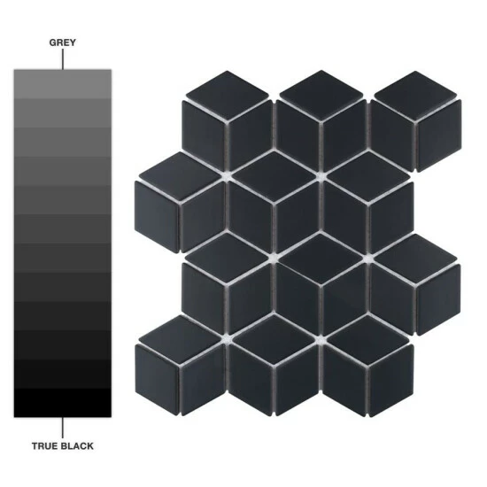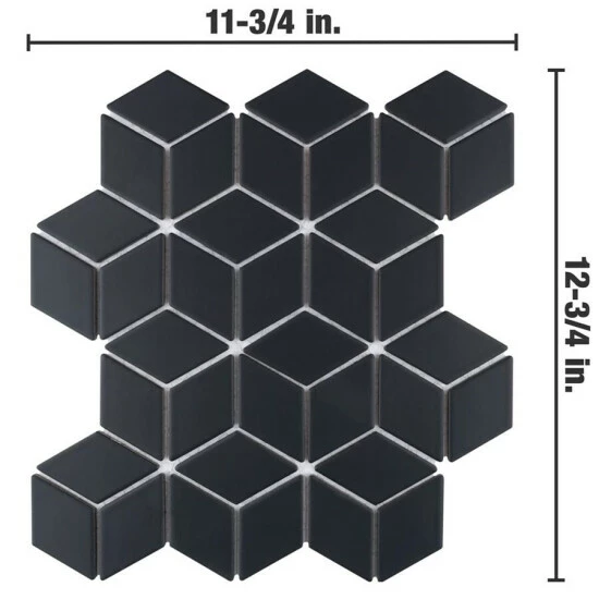 Our Hudson Rhombus Matte Black Porcelain Mosaic Floor and Wall Tile instantly elevates spaces through a refreshing dose of geometric design. As an innovative twist on the classic mosaic, this product is comprised of diamond shaped chips in black with a smooth surface. Matte diamonds are arranged on an interlocking mesh to create a seamless installation. This minimalistic geometric porcelain mosaic is unique yet simplistic enough to integrate into any design, ranging from traditional style renovations to modern home projects. Its impervious and frost-resistant features make this porcelain mosaic tile an ideal choice for both commercial and residential indoor and outdoor floor and wall installations including, kitchens, backsplashes, bathrooms, showers, entryways, fireplace facades and patios. Tile is the better choice for your space. This tile is made from natural ingredients, making it a healthy choice as it is free from allergens, VOCs, formaldehyde, and PVC.