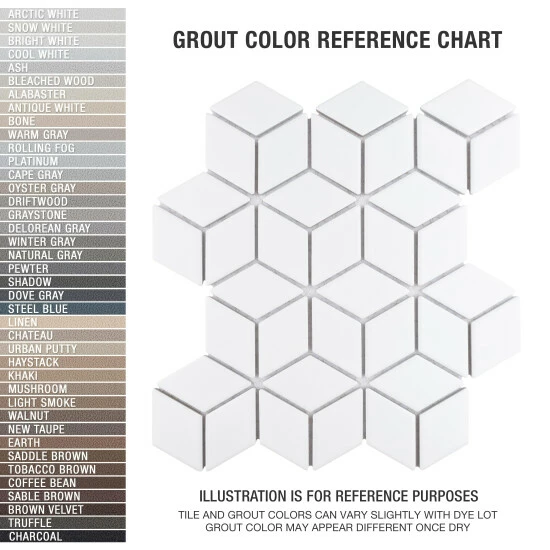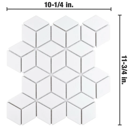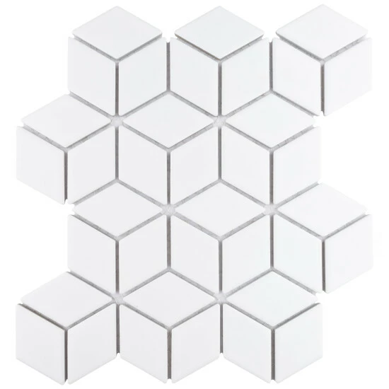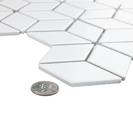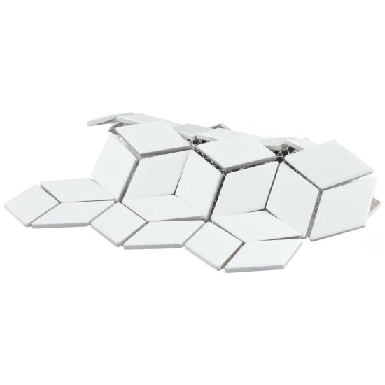 Our Hudson Rhombus Matte White Porcelain Mosaic Floor and Wall Tile instantly elevates spaces through a refreshing dose of geometric design. As an innovative twist on the classic mosaic, this product is comprised of diamond shaped chips in white with a smooth surface. Matte diamonds are arranged on an interlocking mesh to create a seamless installation. This minimalistic geometric porcelain mosaic is unique yet simplistic enough to integrate into any design, ranging from traditional style renovations to modern home projects. Its impervious and frost-resistant features make this porcelain mosaic tile an ideal choice for both commercial and residential indoor and outdoor floor and wall installations including, kitchens, backsplashes, bathrooms, showers, entryways, fireplace facades and patios. Tile is the better choice for your space. This tile is made from natural ingredients, making it a healthy choice as it is free from allergens, VOCs, formaldehyde, and PVC.