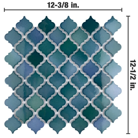 - 12.38 in. width x 12.5 in. length x 0.21 in. thick mesh-mounted mosaic