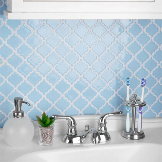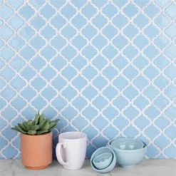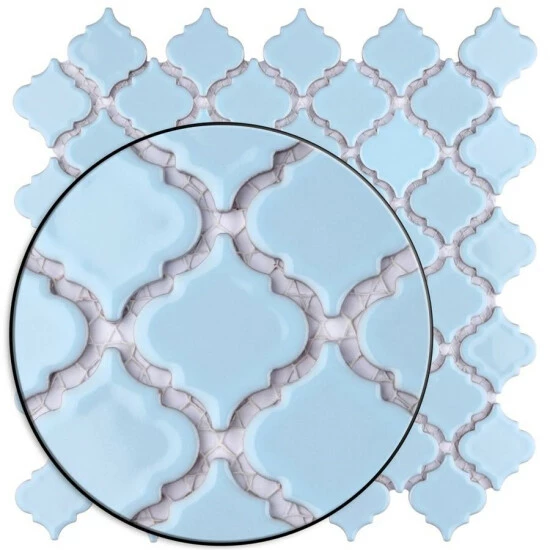 The Hudson Tangier Cashmere Blue 12 in. x 12 in. Porcelain Mosaic Tile features a modernized version of our popular lantern design. This tile has a uniformly glazed surface with a smooth texture and a soothing powder blue color scheme that is slightly tinged with white for added depth. It has a pleasing mixture of cool-toned tints with additional dimension provided by the high-gloss finish. Impervious, frost-resistant and easy to clean, this tile is ideal for both residential and commercial indoor and outdoor spaces. It is a perfect choice on its own or coordinated with other products in the Hudson Tangier series. Tile is the better choice for your space. This tile is made from natural ingredients, making it a healthy choice as it is free from allergens, VOCs, formaldehyde and PVC.