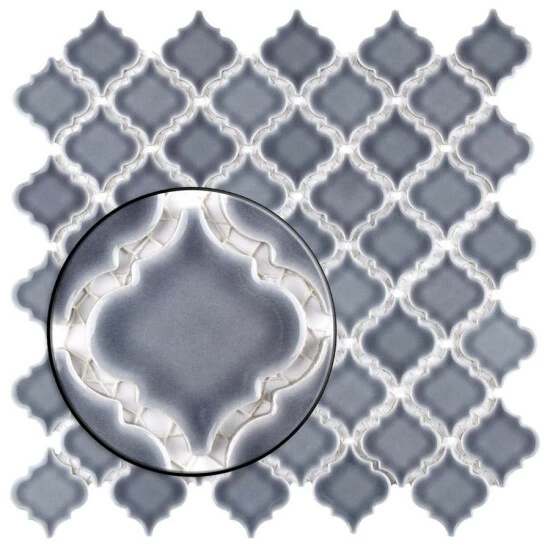 The Hudson Tangier Imperial Grey 12-3/8 in. x 12-1/2 in. x 5 mm Porcelain Mosaic Tile offers a beautifully tranquil update on the timeless lantern design. These tiles feature an eye-drop effect reactive glaze that offers the cool-toned blue slate grey color in the center with a gradient to white on the edge. The end effect is a pleasing mixture of cool-toned tints with additional dimension added by the high-gloss finish. Impervious, frost-resistant and easy to clean, this tile is a perfect choice on its own or coordinated with other colors in our Hudson Tangier series. Tile is the better choice for your space. This tile is made from natural ingredients, making it a healthy choice as it is free from allergens, VOCs, formaldehyde and PVC.