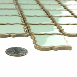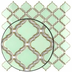 This Hudson Tangier Light Green 12 in. x 12 in. Porcelain Mosaic Tile offers a beautifully tranquil update on the timeless lantern design. This tile features soft green tones in the center mixed with creamy shades on the edge. The end effect is a pleasing mixture of cool tints with additional dimension added by the high-gloss finish. Impervious, frost-resistant and easy to clean, this tile is a perfect choice on its own or coordinated with other colors in our Hudson Tangier series.