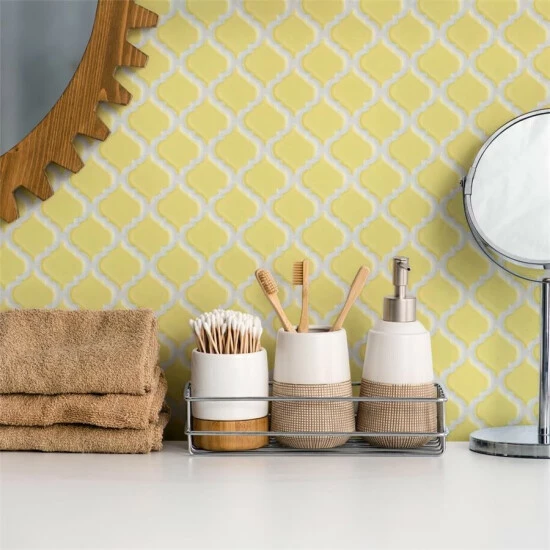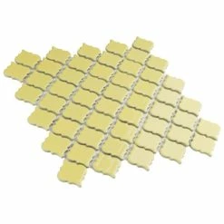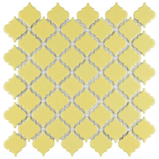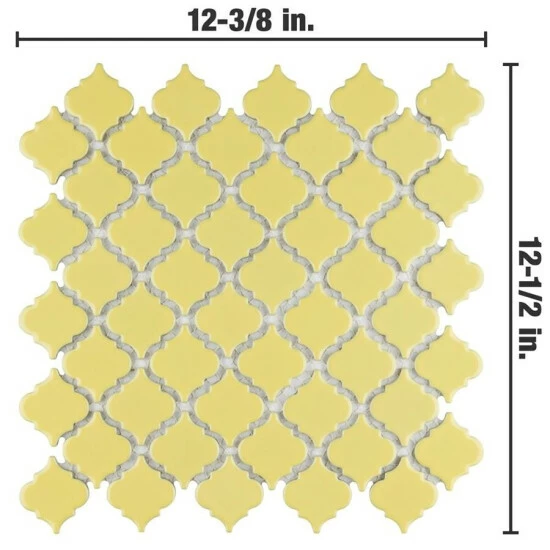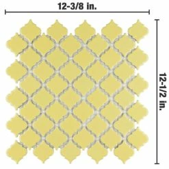 The Hudson Tangier Vintage Yellow 12-3/8 in. x 12-1/2 in. x 5 mm Porcelain Mosaic Tile features our popular lantern design with a modern update. The yellow glaze is the soft, warm hue of classic 1940s decor and adds a palpable brightness and jollity to any space. This impervious, frost-resistant tile is perfect for floors, baths, showers and backsplashes, indoors or out. Use this tile on its own or coordinate with the other colors in our Hudson series for extra creativity. Tile is the better choice for your space. This tile is made from natural ingredients, making it a healthy choice as it is free from allergens, VOCs, formaldehyde and PVC.