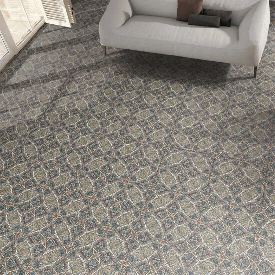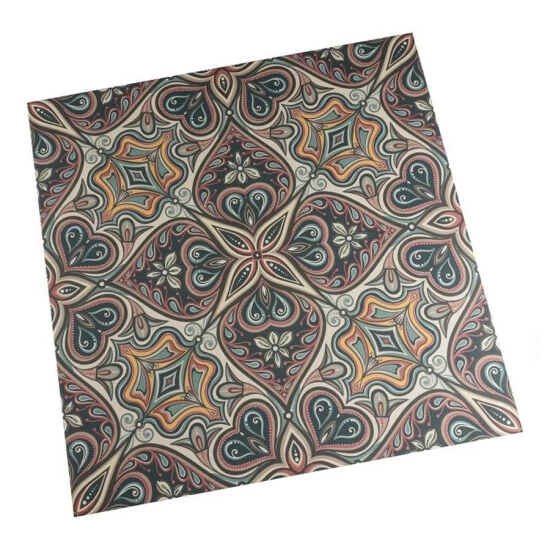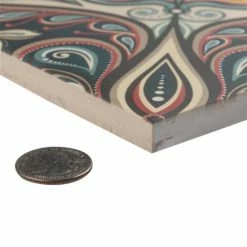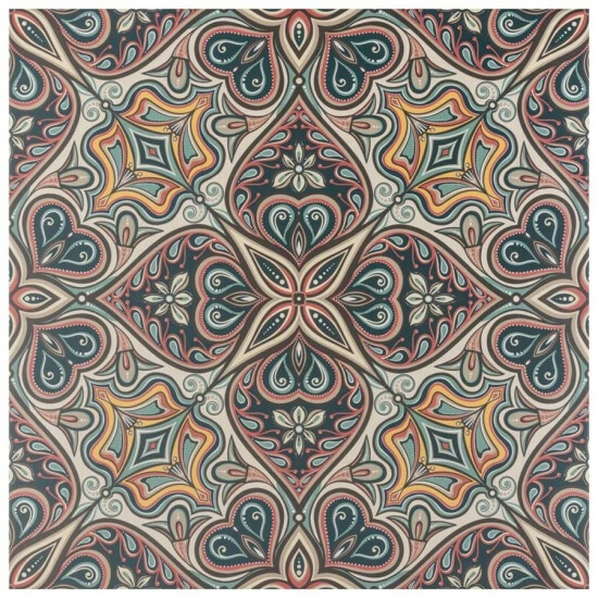 Featuring patterns inspired by Sanskrit Mandalas, our Imagine Tapestry Mandala 19-3/8″ x 19-3/8″ Porcelain Floor and Wall Tile mimics the appearance of traditional decorative wallpaper in a hygienic, long-lasting and versatile material. This square matte tile brings a sense of visual warmth and comfort into any space through graphic motifs in blue, green, red, yellow, brown and beige color tones. These large format tiles undergo a unique third firing process, which ensures color consistency to help create a seamless design for your installation. This tile offers infinite design possibilities and has the ability to reinvent spaces. Its impervious and frost-resistant features make this an ideal choice for indoor and outdoor installations including kitchens, bathrooms, backsplashes, showers, entryways, patios, pools and fireplace facades. Tile is the better choice for your space. This tile is made from natural ingredients, making it a healthy choice as it is free from allergens, VOCs, formaldehyde and PVC.