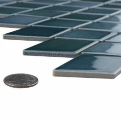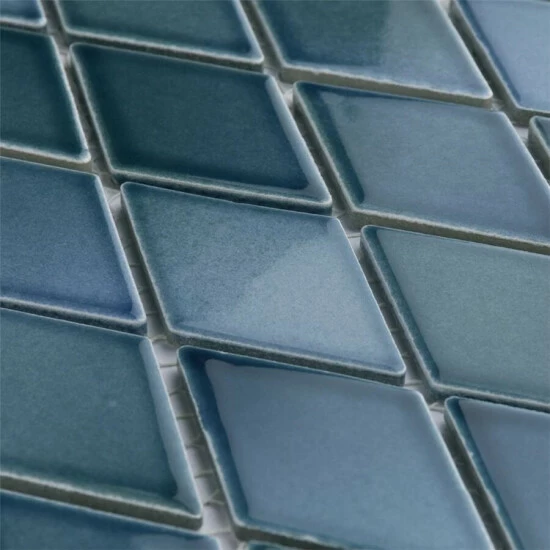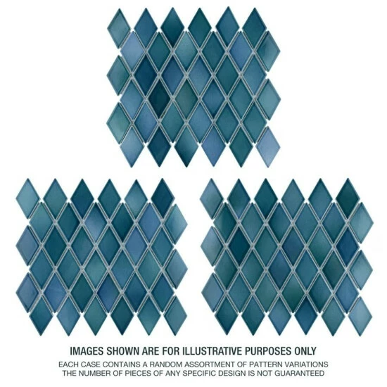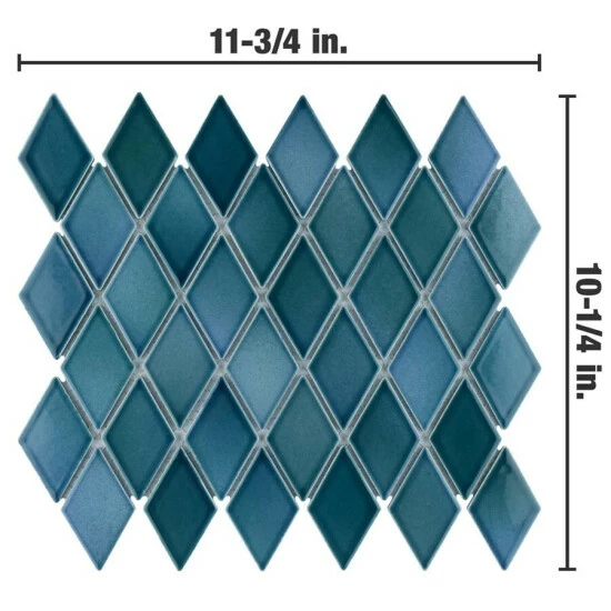 Our Hudson Kite Aquamarine Porcelain Floor and Wall Mosaic Tile instantly elevates spaces through a refreshing combination of geometric design and vivid color. Featuring a reactive glaze, these diamond-shaped tiles have soothing hues of dark aqua blue and green that blend to white around the edges. This floor and wall mosaic creates a unique sporadic design through a pleasing mixture of cool-toned tints with additional dimension added by the smooth, high-gloss finish. Its impervious and frost-resistant features make this porcelain mosaic tile an ideal choice for both commercial and residential indoor and outdoor installations including, kitchens, backsplashes, bathrooms, showers, entryways, fireplace facades and patios. Please note that although we strive to ensure the accuracy of our product content, the reactive glazing creates a stunning one-of-a-kind look which may result in noticeable color variation between different dye lots. Tile is the better choice for your space. This tile is made from natural ingredients, making it a healthy choice as it is free from allergens, VOCs, formaldehyde, and PVC.
