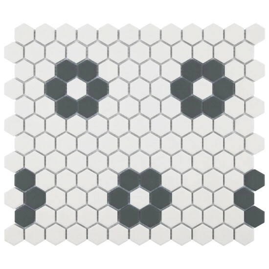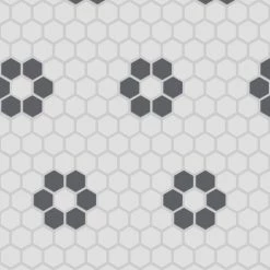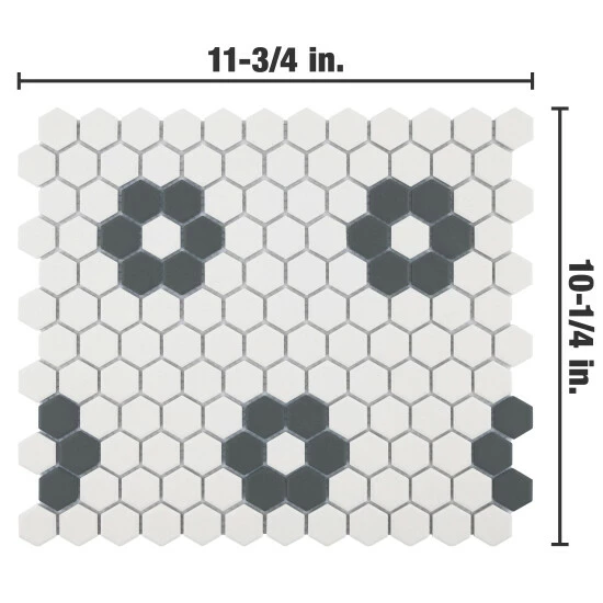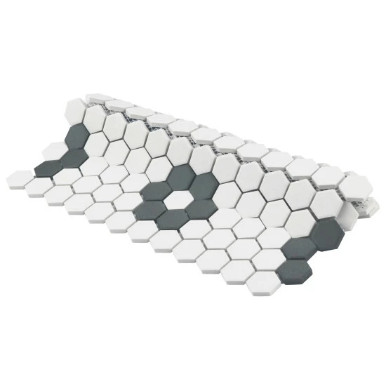 Offering a mosaic look, our Gotham Hex Series Antique White and Black Porcelain Floor and Wall Tile features a slightly textured, matte finish, making it a great choice for your space. With its impervious, frost-resistant features, this mosaic is an ideal selection for both indoor and outdoor residential installations, including bathrooms, backsplashes, showers, hallways and fireplace facades. This tile is a perfect choice on its own or paired with other products in the Gotham Hex Series Collection. Tile is the better choice for your space. This tile is made from natural ingredients, making it a healthy choice as it is free from allergens, VOCs, formaldehyde, and PVC.