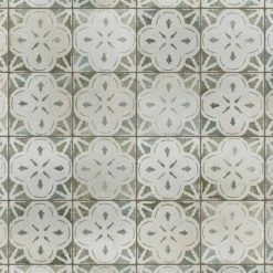 Modern and vintage design elements blend together to create our Kings Aurora Encaustic 17-5/8 in. x 17-5/8 in. Sage Ceramic Floor and Wall Tile. Featuring a worn cement appearance, this tile is a subtle statement piece created by floral motifs in faded shades of sage green set on an antique white base glaze. Designed by interior architect and furniture designer Francisco Segarra, this tile is a true reflection of vintage industrial design. Realistic imitations of scuffs and spots that are the marks of well-loved, worn, century-old tile bring rustic charm to any interior setting. These rustic scuffs and spots convince that this tile is truly aged. Available in 7 print variations that are randomly scattered throughout each case, the variation throughout each tile mimics an authentic aged appearance. Save time and labor spent arranging smaller square tiles and instead install these durable porcelain slabs, which have four 8-3/4 in. squares separated by scored grout lines. The scored grout lines can be grouted with the color of your choice, or left ungrouted for a rugged finish. Its durable, ADA-compliant and glazed features make this tile an ideal choice for indoor residential use, including kitchen backsplashes, bathrooms and showers. Tile is the better choice for your space. This tile is made from natural ingredients, making it a healthy choice as it is free from allergens, VOCs, formaldehyde and PVC.