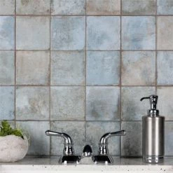 Imported from Spain, our Kings Etna Encaustic 13-1/8 in. x 13-1/8 in. Blue Ceramic Floor and Wall Tile radiates old-world European elegance. This encaustic-inspired tile features a unique, low-sheen glaze and an undulated surface in faded denim blue tones. Designed by interior architect and furniture designer Francisco Segarra, this tile is a true reflection of vintage industrial design. Realistic imitations of scuffs and spots that are the marks of well-loved, worn, century-old tile bring rustic charm to any interior setting. These rustic scuffs and spots convince that this tile is truly aged. Available in 11 print variations that are randomly scattered throughout each case, the variation throughout each tile mimics an authentic aged appearance. Save time and labor spent arranging smaller square tiles and instead install these durable porcelain slabs, which have squares separated by scored grout lines. The scored grout lines can be grouted with the color of your choice, or left ungrouted for a rugged finish. It’s durable, ADA-compliant and glazed features make this tile an ideal choice for indoor commercial and residential use, including kitchens, bathrooms, entryways and patios. Tile is the better choice for your space. This tile is made from natural ingredients, making it a healthy choice as it is free from allergens, VOCs, formaldehyde and PVC.