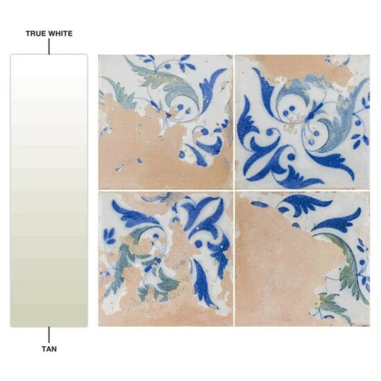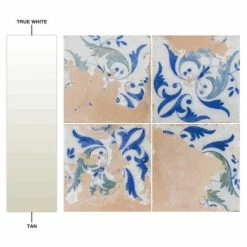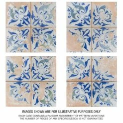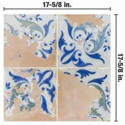 Imported from Spain, Kings Heritage Leaves 17-5/8″ x 17-5/8″ Ceramic Floor and Wall Tile radiates old-world European elegance. This tile features decorative brushstroke patterns in faded blue and green tones that are set amongst a scuffed off-white base glaze. Designed to pay tribute to traditional tile-making, interior architect and furniture designer, Francisco Segarra, created this collection using the colors, patterns, and textures reminiscent of traditional vintage tiles. Developed using a revolutionary technology that allows the creation of different textures on the surface of each piece called Layer Tech, this tile offers decorative dimensionality. Available in 10 print variations that are randomly distributed throughout each case, the variation throughout each tile mimics an authentic aged appearance. Save time and labor spent arranging smaller square tiles and instead install these durable ceramic slabs, which have squares separated by scored grout lines. Its durable and glazed features make this tile an ideal choice for commercial and residential indoor installations including kitchens, bathrooms, backsplashes, showers, and entryways. Tile is the better choice for your space. This tile is made from natural ingredients, making it a healthy choice as it is free from allergens, VOCs, formaldehyde, and PVC.br>