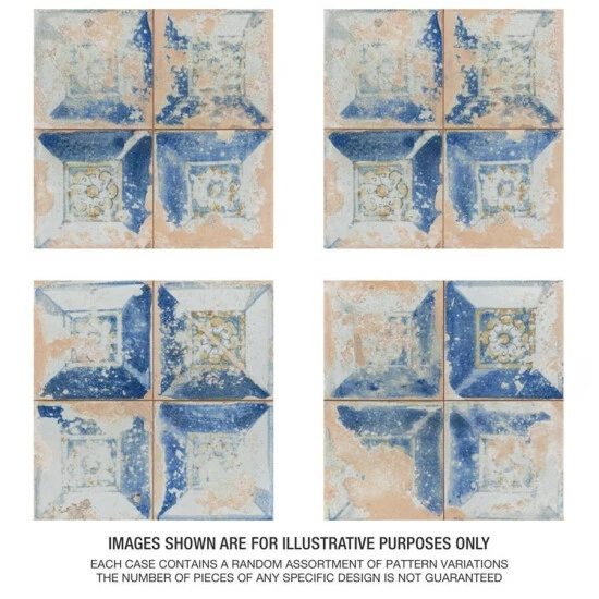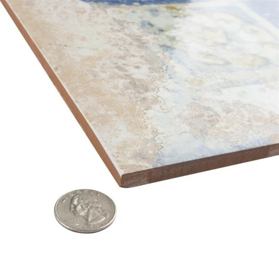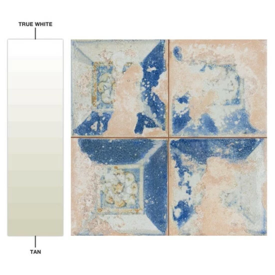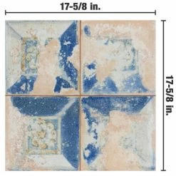 Imported from Spain, Kings Heritage Square 17-5/8″ x 17-5/8″ Ceramic Floor and Wall Tile radiates old-world European elegance. This tile features decorative brushstroke patterns in faded blue and green tones that are set amongst a scuffed off-white base glaze. Designed to pay tribute to traditional tile-making, interior architect and furniture designer, Francisco Segarra, created this collection using the colors, patterns, and textures reminiscent of traditional vintage tiles. Developed using a revolutionary technology that allows the creation of different textures on the surface of each piece called Layer Tech, this tile offers decorative dimensionality. Available in 10 print variations that are randomly distributed throughout each case, the variation throughout each tile mimics an authentic aged appearance. Save time and labor spent arranging smaller square tiles and instead install these durable ceramic slabs, which have squares separated by scored grout lines. Its durable and glazed features make this tile an ideal choice for commercial and residential indoor installations including kitchens, bathrooms, backsplashes, showers, and entryways. Tile is the better choice for your space. This tile is made from natural ingredients, making it a healthy choice as it is free from allergens, VOCs, formaldehyde, and PVC.br>