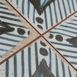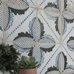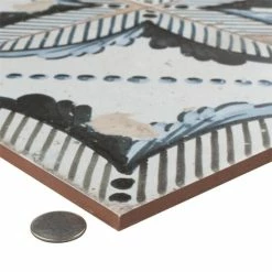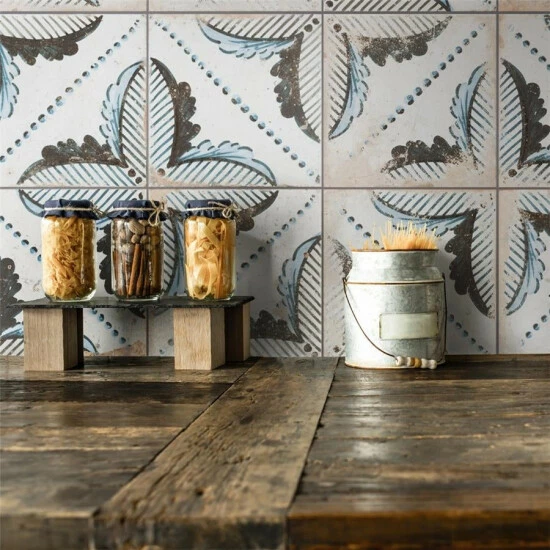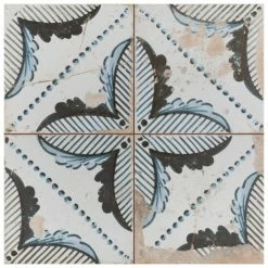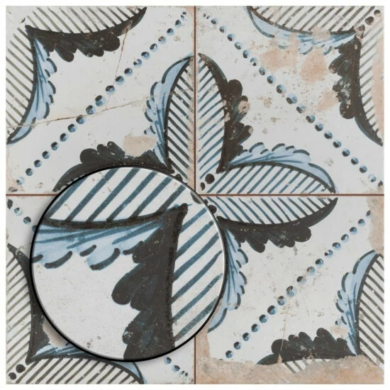 Imported from Spain, our Kings Roots Pinnate 17-5/8 in. x 17-5/8 in. Ceramic Floor and Wall Tile radiates old-world European elegance. This encaustic-inspired tile features a unique, low-sheen glaze in faded charcoal black, antique white and blue tones with floral and geometric motifs in each square. To commemorate 50 years of production, interior architect and furniture designer, Francisco Segarra, designed this collection to pay tribute to the manufacturing facility that brought his ideas to life. Each of his designs are inspired by the ceramics of the time, bringing a sense of timeless warmth and comfort into spaces. Realistic imitations of scuffs and spots that are the marks of well-loved, worn, century-old tile bring rustic charm to any interior setting. These rustic scuffs and spots convince that this tile is truly aged. Available in 9 print variations that are randomly scattered throughout each case, the variation throughout each tile mimics an authentic aged appearance. Save time and labor spent arranging smaller square tiles and instead install these durable ceramic slabs, which have four 8-3/4 in. squares separated by scored grout lines. It’s durable and glazed features make this tile an ideal choice for indoor commercial and residential use, including kitchen, bathrooms, backsplashes, showers and entryways. Tile is the better choice for your space. This tile is made from natural ingredients, making it a healthy choice as it is free from allergens, VOCs, formaldehyde and PVC.
