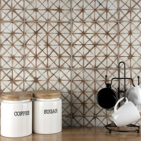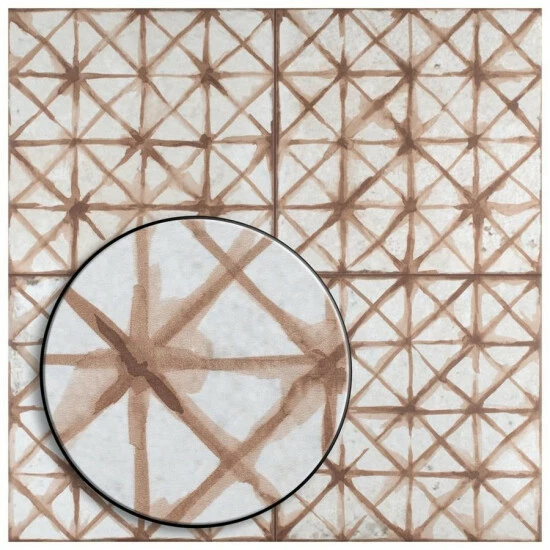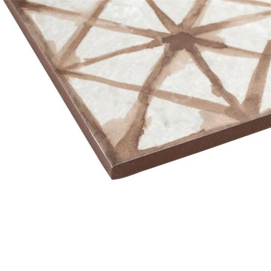 Our Kings Temple Oxide 17-5/8 in. x 17-5/8 in. Ceramic Floor and Wall Tile is a decorative piece with a watercolor inspired appearance. The defining feature of this encaustic-look tile is the unique, low-sheen glaze in beige tones with faded burnt orange intersecting lines that blend to create various geometric shapes. Slight variation across the surface mimics a hand painted appearance. Designed by interior architect and furniture designer Francisco Segarra, this tile is a true reflection of vintage industrial design. There are 10 different variations available that are randomly scattered throughout each case. With a high durability rating, this tile is an ideal choice for both commercial and residential indoor installations including, kitchens, bathrooms and entryways. The scored grout lines can be grouted with the color of your choice to further customize your installation. Tile is the better choice for your space. This tile is made from natural ingredients, making it a healthy choice as it is free from allergens, VOCs, formaldehyde and PVC.