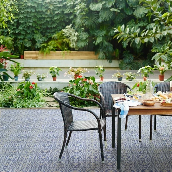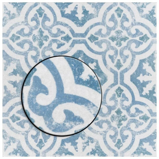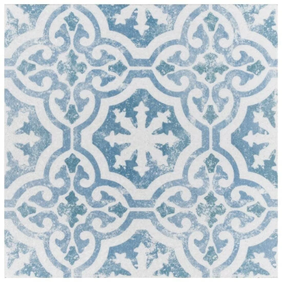 The Klinker Alcazar Magnolia Encaustic 12-3/4″ x 12-3/4″ Ceramic Floor and Wall Quarry Tile captures the authenticity of age-old tile making with modern technology. This glazed natural quarry tile has rustic, old-world patterns in shades of beautiful, soothing blues. The design features random scuffs throughout, convincing that this piece is truly aged. This extruded tile is manufactured in Spain and is safe for heavy-duty interior and exterior locations, including patios, showroom floors and kitchens. This tile offers frost resistance and water resistance, making it a great choice for your outdoor space. As the first and only distributor in the United States to carry products from this factory, you are guaranteed to have a unique space.