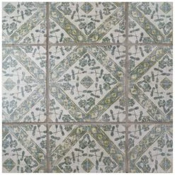 The Klinker Retro Blanco Bergenia Encaustic 12-3/4″ x 12-3/4″ Ceramic Floor and Wall Quarry Tile captures the authenticity of age-old tile making with modern technology. This glazed natural quarry tile has rustic, old-world patterns in shades of beautiful, soothing teals and goldenrod. The design features random scuffs throughout, convincing that this piece is truly aged. This extruded tile is manufactured in Spain and is safe for heavy-duty interior and exterior locations, including patios, showroom floors and kitchens. This tile offers frost resistance and water resistance, making it a great choice for your outdoor space. As the first and only distributor in the United States to carry products from this factory, you are guaranteed to have a unique space.