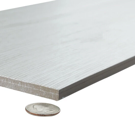 Capturing the warmth of natural wood in a classic porcelain material, our Llama White Porcelain Floor and Wall Tile brings the irreplaceable beauty of nature into any living space. This large format rectangle tile features stunningly realistic woodgrains and striations in light grey and off-white tones. To add further contrast and depth, this tile has a slightly textured surface that echoes the feel of real wood. Available in 18 different print variations that are randomly scattered throughout each case, this tile offers a one-of-a-kind look. Its impervious and frost resistant features make this an ideal choice for indoor and outdoor installations including kitchens, bathrooms, backsplashes, showers, entryways, and patios. Tile is the better choice for your space. This tile is made from natural ingredients, making it a healthy choice as it is free from allergens, VOCs, formaldehyde, and PVC.