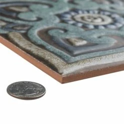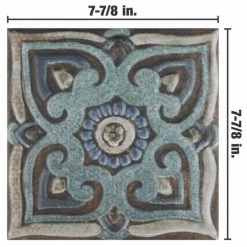 Textured patterns and numerous colorations come together to create the Mandala Decor Mix 7-7/8 in. x 7-7/8 in. Ceramic Wall Tile. These textured tiles feature raised, medallion patterns reminiscent of old-world European design with distressed age marks that convey age, alongside faux stains, scuffs and spots. With intricate patterns in varying shades of faded sea green, denim blue and tan/brown tones, this tile creates a uniquely beautiful, rustic look. It is available in eight print variations that are randomly scattered throughout each case. This tile is ideal for indoor wall installations, including backsplashes, bathrooms and fireplaces. Tile is the better choice for your space. This tile is made from natural ingredients, making it a healthy choice as it is free from allergens, VOCs, formaldehyde and PVC.