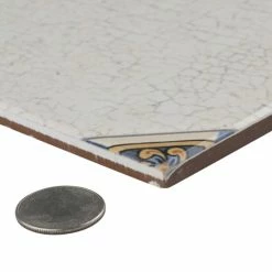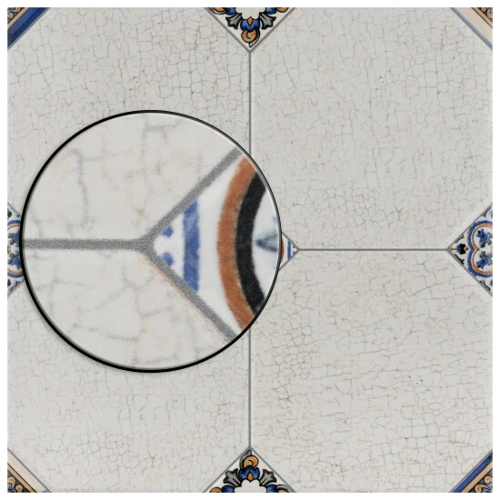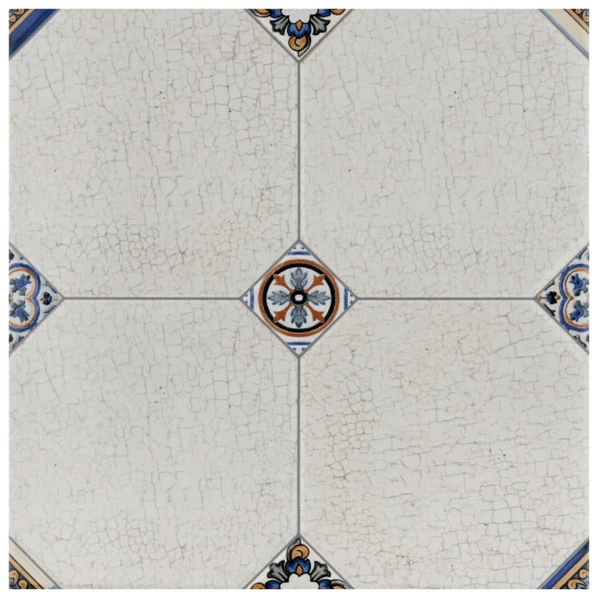 Reflecting traditional Spanish influences, the Manises Jet Blanco 13-1/8 in. x 13-1/8 in. Ceramic Floor and Wall Tile mimics the appearance of old-world elegance. Complete with a crackle glaze, this tile offers a worn look accented with geometric designs that gives your space a truly authentic feel. With tones of blue, orange and yellow on a muted white background, it it a perfect addiction to any indoor installation. Tile is the better choice for your space. This tile is made from natural ingredients, making it a healthy choice as it is free from allergens, VOCs, formaldehyde and PVC