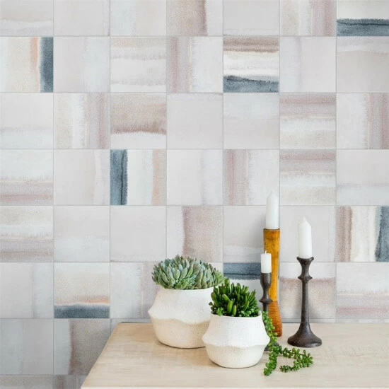 Reinterpreting the beauty of land and sea from an artist’s viewpoint, our Matter Canvas Bone Blue Porcelain Floor and Wall Tile offers a highly personal and unique view of nature’s most beautiful landscapes. This square tile features brushstroke patterns in soft pink, beige, blue and white tones that echo the look and feel of sandy beaches, rolling waves and endless horizons. As a result of refined digital inkjet techniques and color blending, this tile offers exquisite depth and dimension that is further enhanced by its textured, mixed finish surface. Available in thirty print variations that are randomly distributed throughout each case, this tile offers a truly one-of-a-kind look. Its impervious, frost-resistant, and durable features make it an ideal choice for both indoor and outdoor commercial and residential installations including kitchens, bathrooms, backsplashes, showers, and pools. This tile is an ideal choice on its own or paired with other products in our Matter Collection to create a customized installation. Tile is the better choice for your space. This tile is made from natural ingredients, making it a healthy choice as it is free from allergens, VOCs, formaldehyde, and PVC.