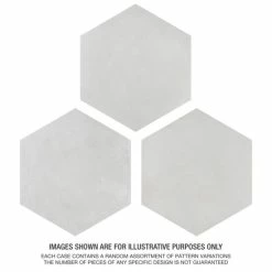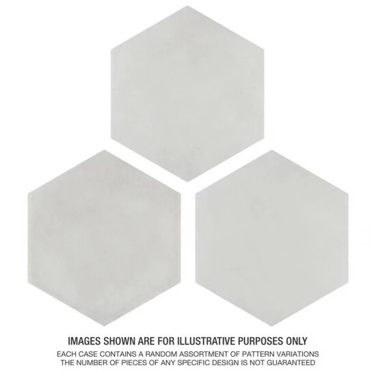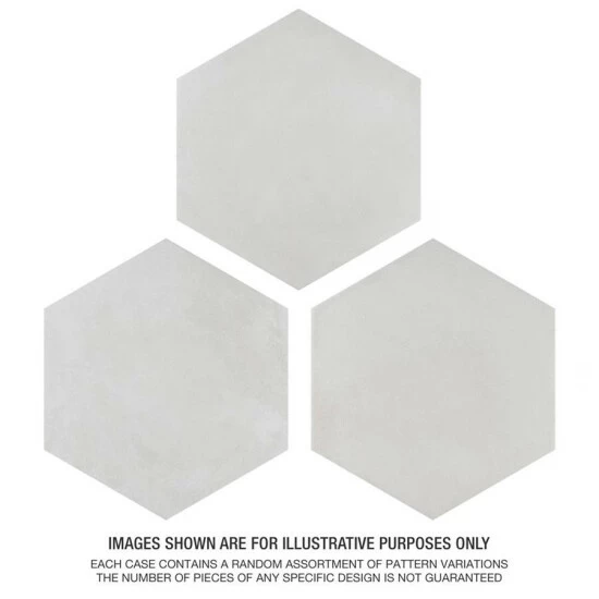 Reinterpreting the beauty of land and sea from an artist’s viewpoint, our Matter Hex Bone Porcelain Floor and Wall Tile offers a highly personal and unique view of nature’s most beautiful landscapes. This square tile features off-white and grey tones that echo the fresh feel of fog at dawn. As a result of refined digital inkjet techniques and color blending, this tile offers exquisite depth and dimension that is further enhanced by its textured, mixed finish surface. Available in twenty print variations that are randomly distributed throughout each case, this tile offers a truly one-of-a-kind look. Its impervious, frost-resistant, and durable features make it an ideal choice for both indoor and outdoor commercial and residential installations including kitchens, bathrooms, backsplashes, showers, and pools. This tile is an ideal choice on its own or paired with other products in our Matter Collection to create a customized installation. Tile is the better choice for your space. This tile is made from natural ingredients, making it a healthy choice as it is free from allergens, VOCs, formaldehyde, and PVC.